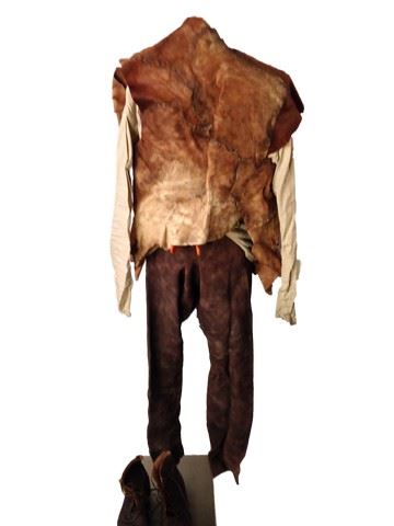 Screen worn, hero, Kaulder (Vin Diesel) hyde vest "Scott Koppuck", muslin custom made linen shirt with cream laces "Serj Tailor", brown leather pants with side buckles on both sides, custom made "Jitterbug Boy". Pants read "Kaulder" inside the top. This was worn in 53-56, the medieval happy flashback look. Wardrobe tag included.