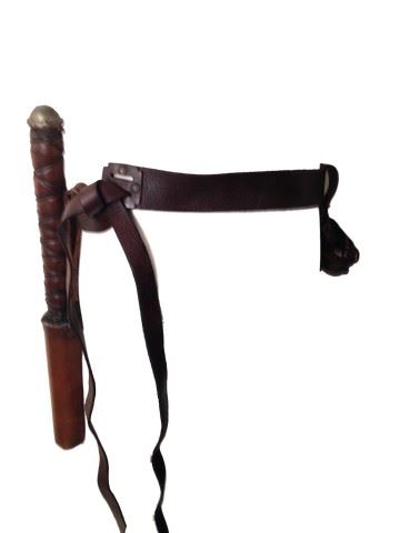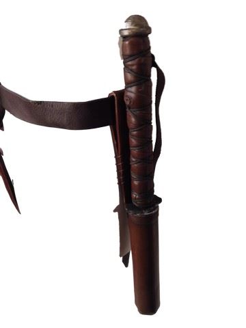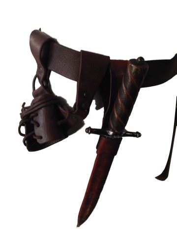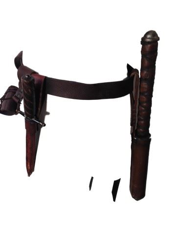 From Lionsgate Films production of The Last Witch Hunter comes Kaulder's (Vin Diesel) screen used hero brown leather medieval style holster with rubber knife and leather sheath, a foam torch and holder and empty leather sword scabbard.(53x22)