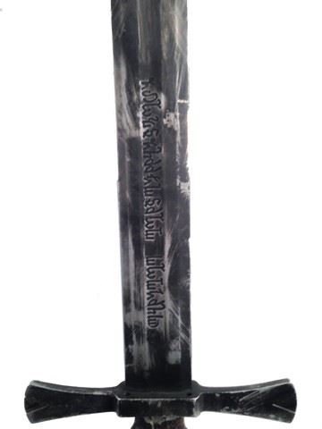 Straight from the set of Lionsgate's supernatural thriller The Last Witch Hunter comes Kaulder's (Vin Diesel) main hero screen used, stunt sword! This was featured heavily in the movie and the sword is production constructed with metal blade and wood handle sword. There is symbolic writing inscribed and a special symbol on the handle. The sword has been cut by production for the sequences in the film. It is coated with production black soot to appear to be burning in the film. (28x8)