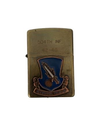 Kaulder's (Vin Diesel) screen used, vintage Zippo lighter with his sword symbol on a production made crest and "504th INF 42-46" etched into the lid.