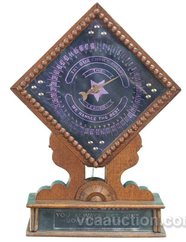 "The Leader" Oak Countertop Coin Drop w/ Spinner Trade Stimulator C. 1897 (Play For Cigars) MFG By Drobisch Bros. & Co. MFG's Illinois w/ Keys