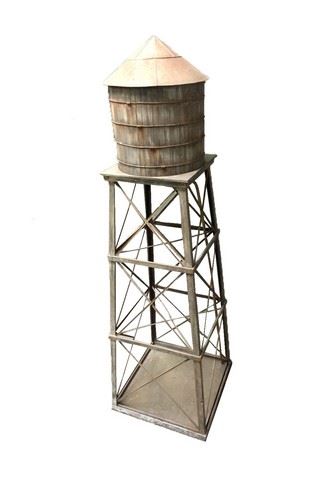 19th Century wood tank water tower used in the "Tiger Bay" Wharf when the Nautilus Arrives. Fabricated from wood, styrene, sheet, and metal. 49" tall x 15" wide. 1:12 scale. This incredible, handmade miniature is from the celebrated collection of Academy Award winning New Deal Studios. New Deal Studios is a 21st Century Media Studio, unlike any in the world. A full-service film production and visual effects studio, with over 20 years of iconic imagery, New Deal Studios develops, designs, prototypes, and creates all types of high caliber media projects. Founded in 1995 by Matthew Gratzner, Ian Hunter and Shannon Blake Gans, this artist owned and operated independent studio, born in the heyday of visual effects, has truly evolved into the technology driven studio for the future, consistently delivering the perfect marriage of artistry and technology. Award winning credits by New Deal Studios include high-profile projects such as Dark Knight Rises, Hugo, The Avengers, Oz the Great and Powerful, Iron Man, The Dark Knight, Watchmen, I am Legend, Night at the Museum, Whiteout, 2012, Alice in Wonderland, Inception, Battleship and Interstellar.