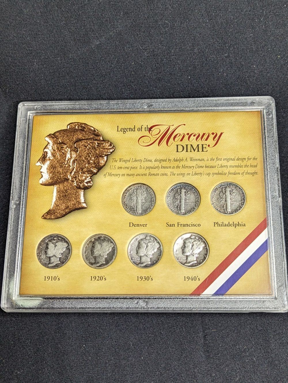 The Legend of the Mercury Dime. A set of 7 Beautiful Mercury Dimes from every decade they were minted!& nbsp; In Plexiglas presentation holder. make's a great gift.