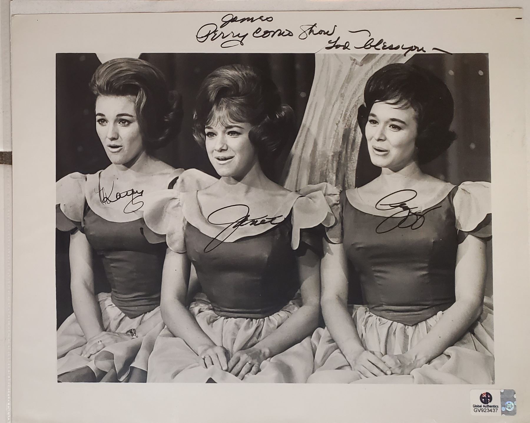 The Lennon Sisters: Kathy, Janet and Peggy, Autographed 8” x 10” Photo. Global Aut