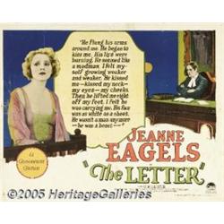 <B>The Letter (Paramount, 1929)</B></I> Half Sheet (22" X 28"). The only surviving sound film of the great stage actress Jeanne Eagels, this is the first version of Somerset Maugham's play (Bette Davis starred in the better known remake in 1940). Eagels plays Leslie Crosbie, the wife of a Malayan plantation owner played by Reginald Owen in his American debut. Leslie shoots a man, Geoffrey Hammond (Herbert Marshall, who would play the husband in the remake), who she claimed assaulted her. Her lawyer, however, finds a letter from Leslie to Hammond that proves that she was in love with him. It is not until after she is acquitted that she finally tells her husband her true feelings. Shortly after the film came out, Eagels was dead of an overdose. She received the first posthumous acting Oscar nomination for her work on this film. This half sheet is the only known poster that we are aware of for this title. Pinholes, edge tears with tape on the front and back, wrinkling on the fold lines and a few other wrinkles, fold separations, a few small scratches and some soiling. Very Good+.