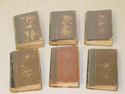 The Life and Opinions of Tristram Shandy, Gentleman - 6 Volumes. London: Printed for J. Dodsley, 1777. 16mo - over 5¾" - 6¾" tall. Hard Cover. Ex-Library. Good Condition. New Edition. Bound in 1/2 leather and marbled paper, with engraved frontis by Hogarth in Vol. 1. Covers rubbed with edge/corner wear/tear, front cover detached on Vol. 1, another has taped hinges. marbled paper on Vol. 5 slightly different. Complete in 6 volumes.