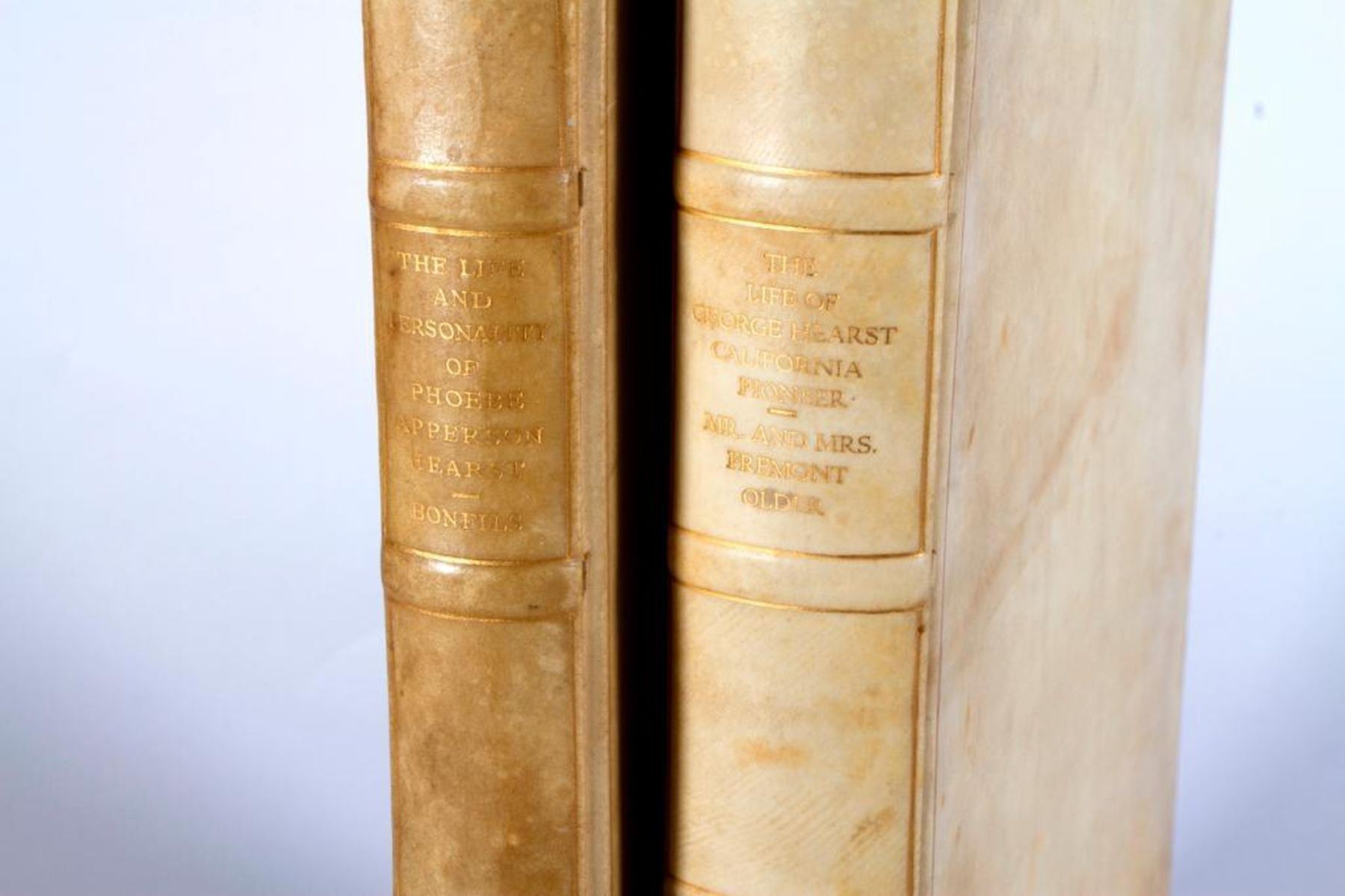 Title: The Life and Personality of Phoebe Apperson Hearst/ The Life of George Hearst Author: Winifred Black Bonfils Published: John Henry Nash, San Francisco, 1928/1933 Description: Hardcover. Full vellum bound. Gilt lettering. Condition: Very good condition.
