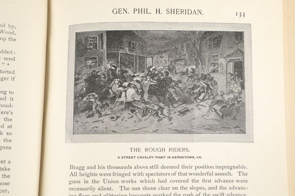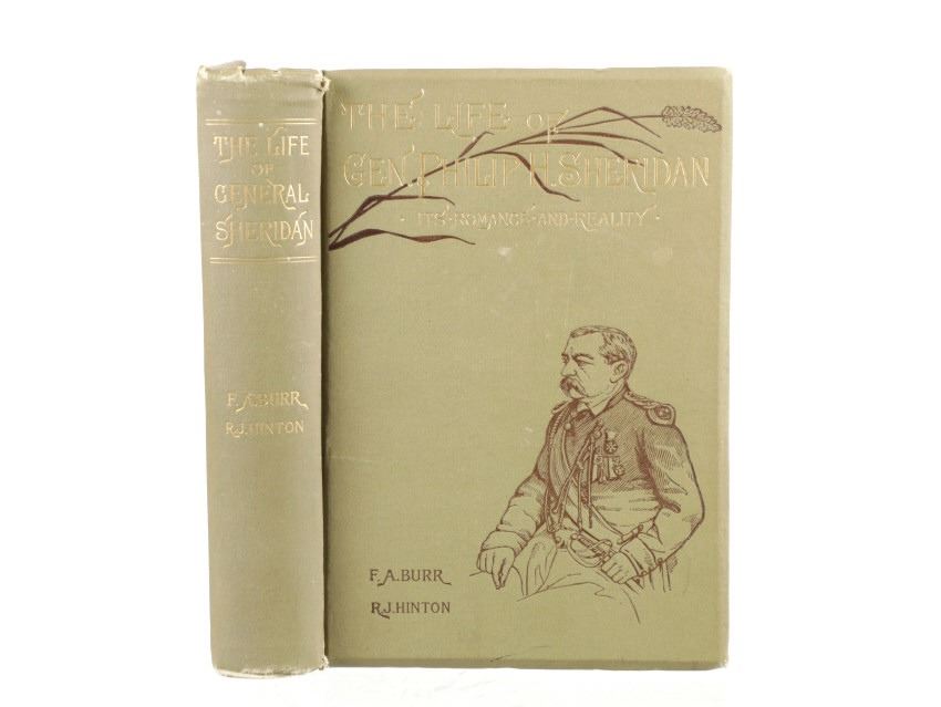For your consideration is this first edition of, "The Life of Gen. Philip H. Sheridan" by F. A. Burr and R. J. Hinton, 1888, J.A. & R.A. Reid, Providence, RI., publishers. This book is the story of American Civil War Union general Philip Sheridan's career which was notable for his rapid rise to major general and his close association with General-in-chief Ulysses S. Grant, who transferred Sheridan from command of an infantry division in the Western Theater to lead the Cavalry Corps of the Army of the Potomac in the East. In 1864, he defeated Confederate forces under General Jubal Early in the Shenandoah Valley and his destruction of the economic infrastructure of the Valley, called "The Burning" by residents, was one of the first uses of scorched-earth tactics in the war. In 1865, his cavalry pursued Gen. Robert E. Lee and was instrumental in forcing his surrender at Appomattox Courthouse. Inscription on backside of front end paper from previous owners including Colonel Bliss United States Army 1892. The green cloth gold gilt stamped illustrated hardcover is in nice condition, slight scuffing noted. The book measures 9" L x 6 1/2" W x 1 5/8" D and weighs 2 pounds and 4 ounces.