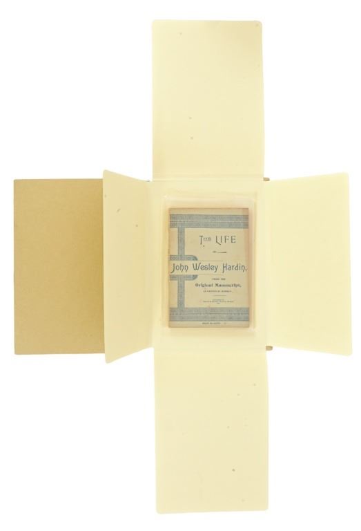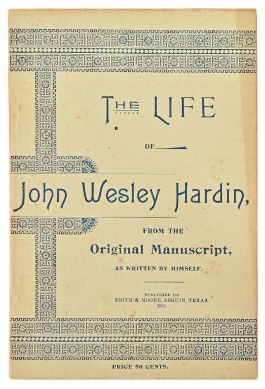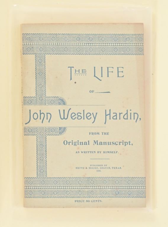 The Life of John Wesley Hardin, from the Original Manuscript, as Written by Himself." Published 1896 by Smith & Moore, Seguin, Texas. Rare first edition in very good condition, with the notorious erroneous picture of John Wesley Hardin's brother, Joe Hardin. Includes original outer protective case.