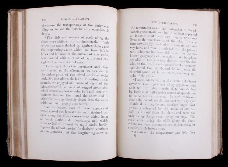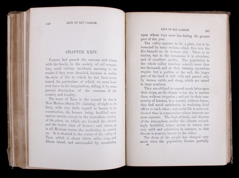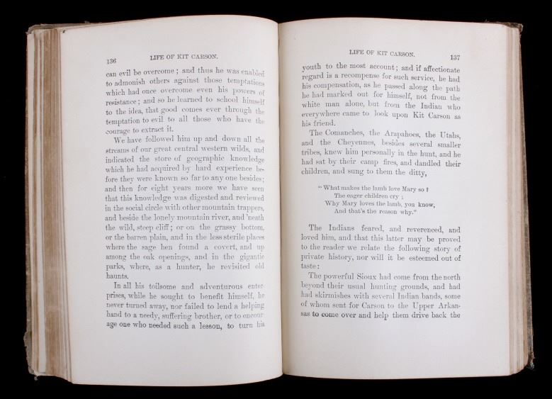 Included in this lot is a 1st edition of The Life of Kit Carson - The Great Western Hunter, by Charles Burdett, and published in 1902 by A. L. Burt Company, New York. The novel chronicles the life and adventures of Kit Carson - One of the Olds West's most famous guides, hunters, and scouts. The book utilizes a colorful graphic hardcover. The book is in good condition overall. The book measures 7 5/8" tall, 5 5/8" wide, and 1 1/8" thick.