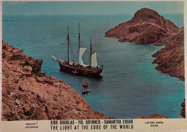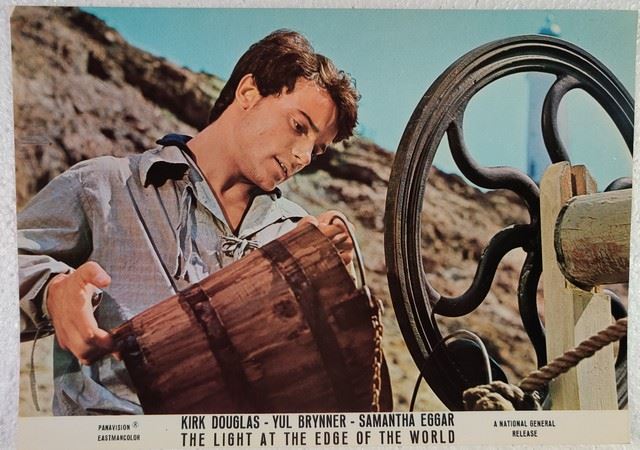 The Light at the Edge of the World (Co-production United States-Liechtenstein-Spain-Switzerland; Triumfilm, Jet Films, Bryna Productions, 1971) lobby card. Adventure. Starring Kirk Douglas, Yul Brynner, Samantha Eggar, Fernando Rey, Renato Salvatori, Jean-Claude Drouot, Massimo Ranieri. Directed by Kevin Billington. Very light edge wear, very light creases. Excellent. (11"x14").