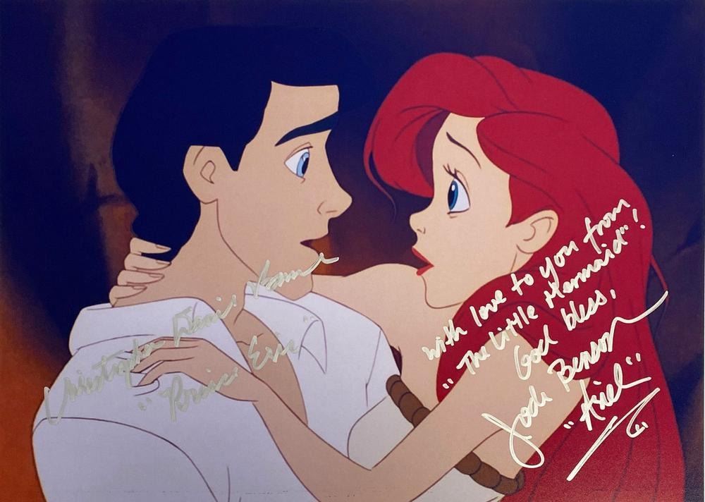 The Little Mermaid cast facsimile signed movie photo autographed by voice actors Jodi Benson and Christopher Daniel Barnes. 8x10 inches. This item is a reprint of an original autograph