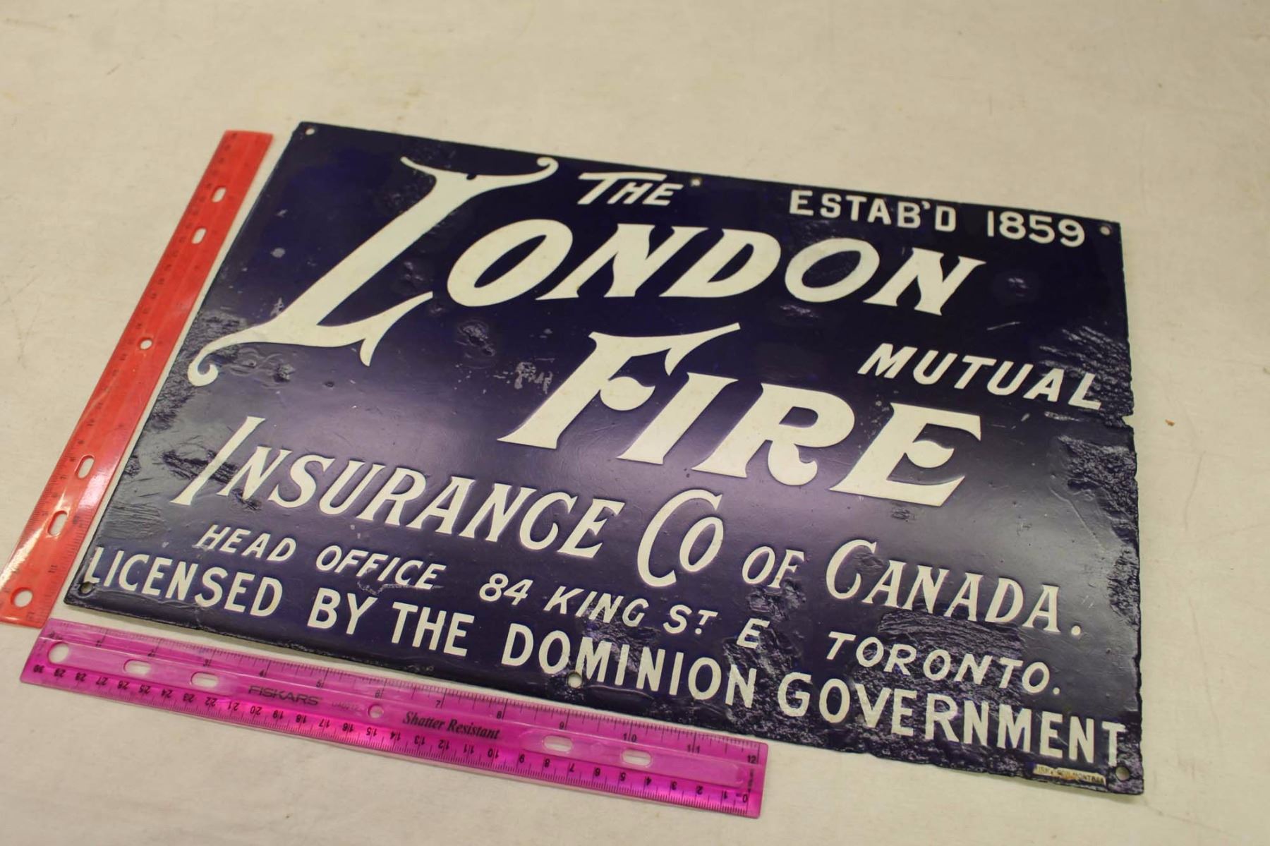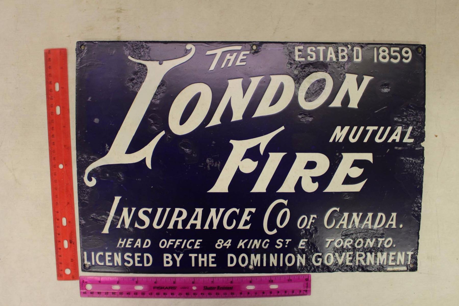 The London Fire Insurance Co. of Canada Porcelain Sign (18"x12")