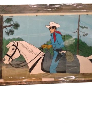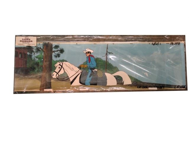 "The Lone Ranger" Animation Pan (featuring the "Lone Ranger" and his trusty horse "Silver" / Filmation / includes original hand painted background / 1980 / 36.5" x 10.5")