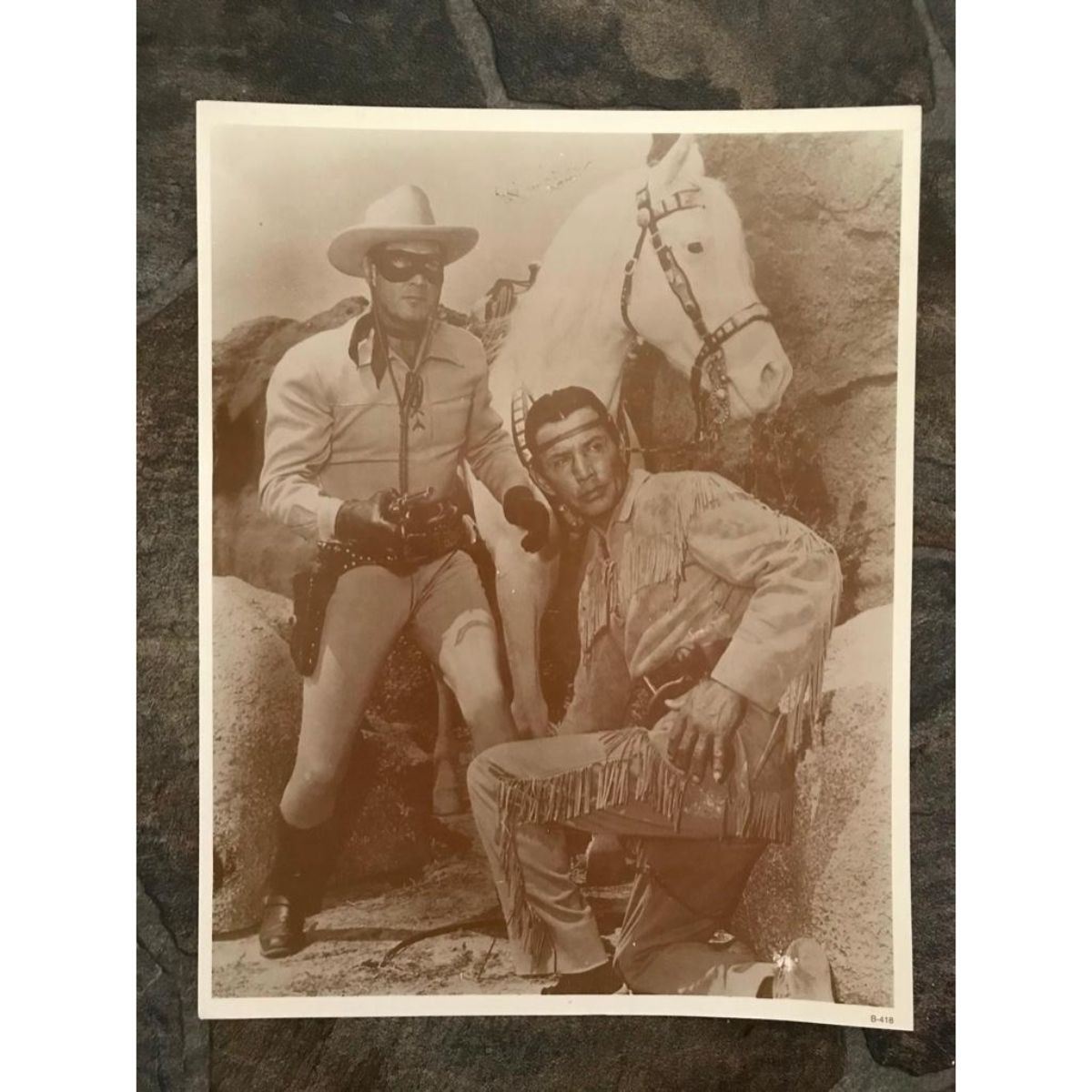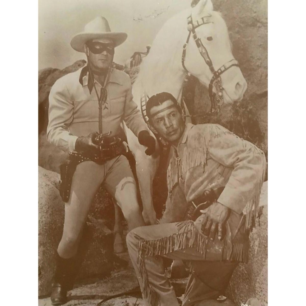 The Lone Ranger & Tonto sepia-tone photo, printed on heavy card stock. 11" X 14". Vintage printing from the early 1990's * some scratches to the surface of the print from storage, top center, per photo.