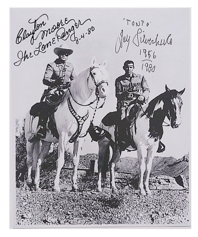 Rare 'The Lone Ranger' photograph signed by Clayton Moore and Jay Silverheels.