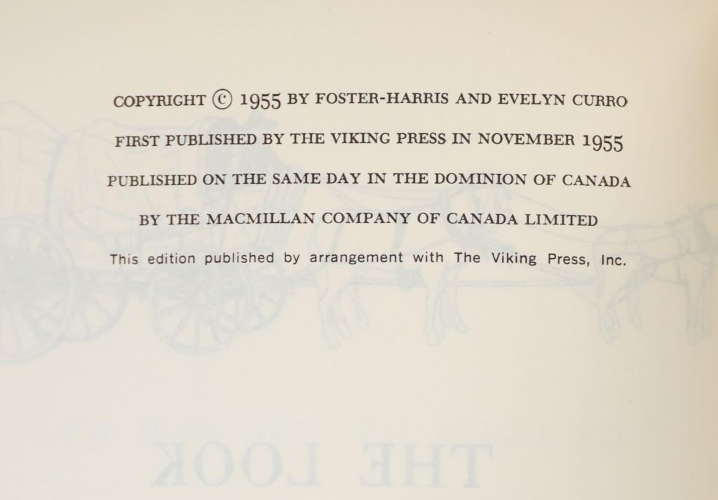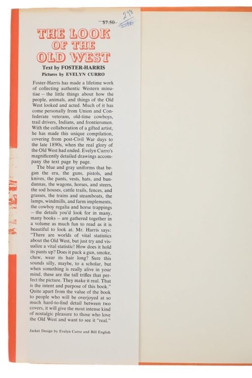 For your consideration is this 1955 first edition book titled, "The Look of the Old West" by Foster-Harris and illustrations done by Evelyn Curro. This book offers the fashions and feel of the Old West from the end of the Civil War through the 1890s by detailing the styles of the period; military dress for the Union and Confederate armies; weaponry of the time; and more. It is illustrated with clear, precise drawings to assist the descriptions throughout. The book shows good condition overall with some slight wear to the dust jacket but no signs of wear or damage on the interior pages. The book measures 11" L x 8 1/8" W x 1" D and weighs 1 pound and 12 ounces.