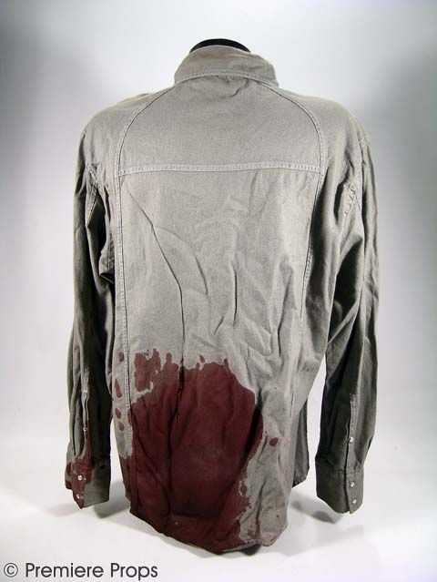Gary's(MATTHEW GOODE) grey "Kenneth Cole" L/S snap up shirt (*shirt has "bullet entry" holes in lower left front and back, back hole is approx. 3.5" vertical tear. Also has large stage blood stains throughout) (size XL)
