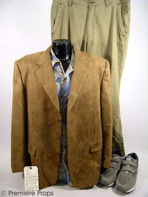 Lewis' (JEFF DANIELS) carmel colored "Dreesmann" faux-suede blazer, blue and beige Hawaiian print "Maui Maui" button up single pocket shirt (size XL), beige "Old Navy" flat front khakis (Size 36 x 34), grey and white "Rupert Athletic Works" velcro sneakers(*slightly dirty) (size 12),