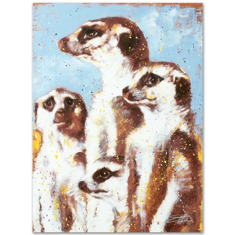 With bright colors and expressive lines, Stephen Fishwick puts a unique spin on pop culture portraits. "The Lookout" is a limited edition giclee on stretched canvas, numbered and bears the artist's authorized signature. This piece comes gallery wrapped and ready to hang! Includes Certificate of Authenticity! Measures approx. 16" x 20" (image).