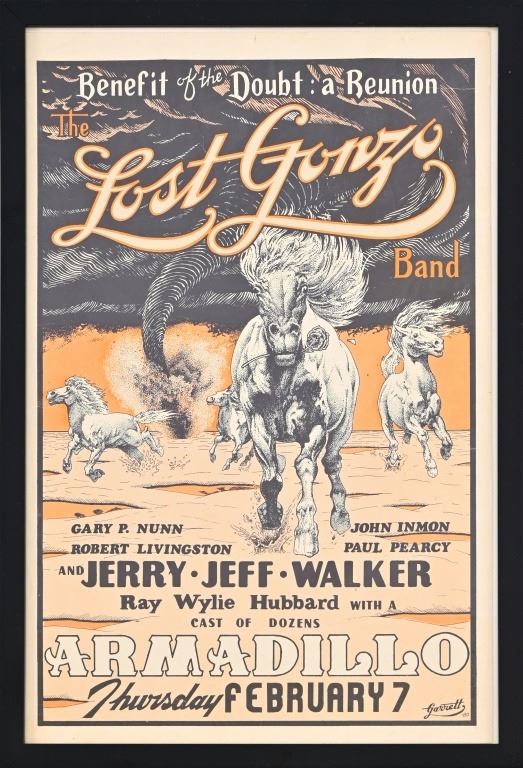 By Danny Garrett 1980. Live at The Armadillo. 11 1/2" x 17 1/2". Framed 12 3/4" x 18 3/4".