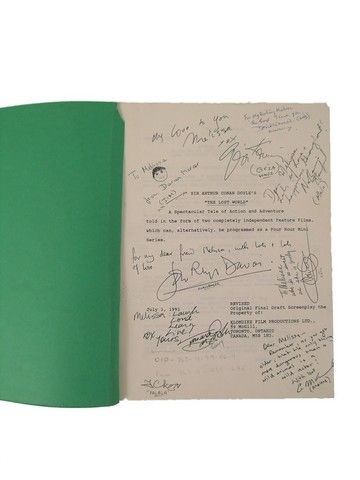 From the 1992 mini-series of Sir Arthur Conan Doyle's classic "The Lost World", this is star David Warner's (Professor Summerlee) personal script. It includes both Parts 1 and Parts 2 and includes his personal notes. The title page is signed by Warner and ten other stars of the series. The script comes from David Warner's personal collection.