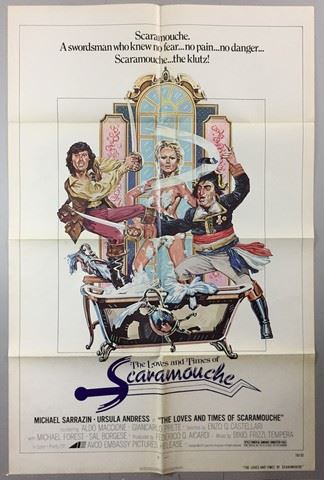 The Loves and Times of Scaramouche (AVCO Embassy Pictures, 1975). One Sheet. Litho. Number 76/83. Starring: Michael Sarrazin and Ursula Andress. There are fold lines, creases, markings and minor edge wear. Very fine. (27" X 41").