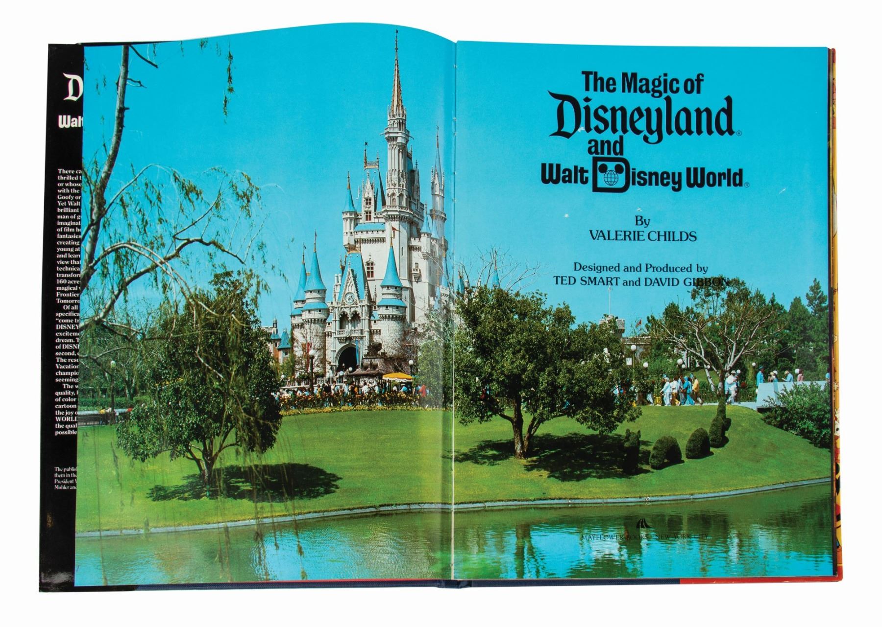 (Walt Disney World, 1979) A wonderful hardcover book titled, "The Magic of Disneyland and Walt Disney World." The book provides a great visual tour of the two parks in their earliest years and contains 50 pages of color photos and information. Measuring 13"x9.5", the book is in very good condition with minor edge-wear and includes its original dust jacket.