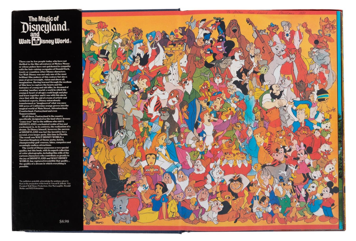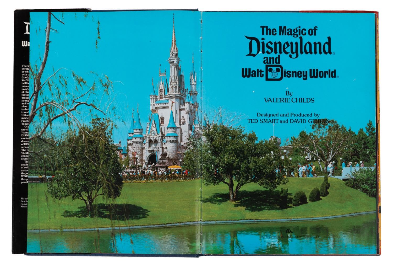 (Disney Parks, 1979) A copy of "The Magic of Disneyland and Walt Disney World" souvenir book by Valerie Childs. Measuring 9.5"x13", the book is in good condition with wear and loose binding.