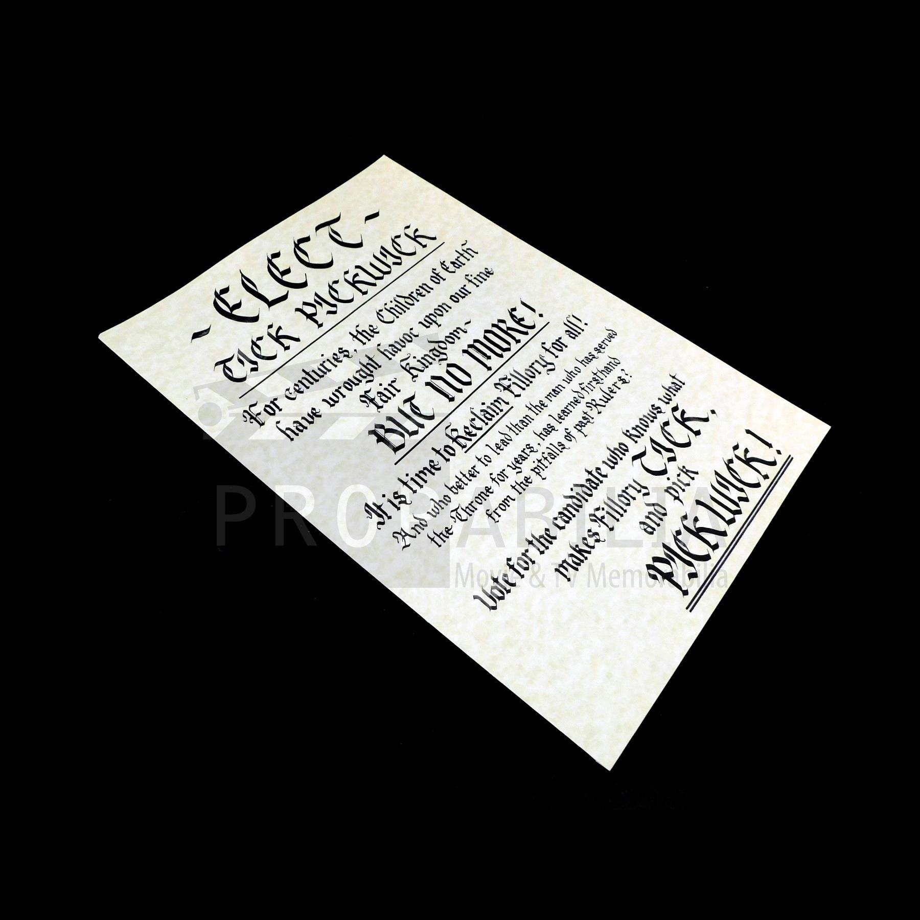 Propabilia guarantees the attribution of each lot of Property as stated in the title block of that lot of Property in the Auction catalogue, each lot of property comes with its own Certificate of Authenticity (COA). Bidders should be aware that multiple examples of props and costumes are frequently used during production (hence the Propmasters saying 'one and done'), usually as few as 3 or as many as 6 or more pieces may be used to represent the item on screen. It is often impossible to determine whether a specific piece has been used on-camera. Any specific details about the property known to Propabilia will be noted within the description, but no warranties are given by Propabilia as to that description.