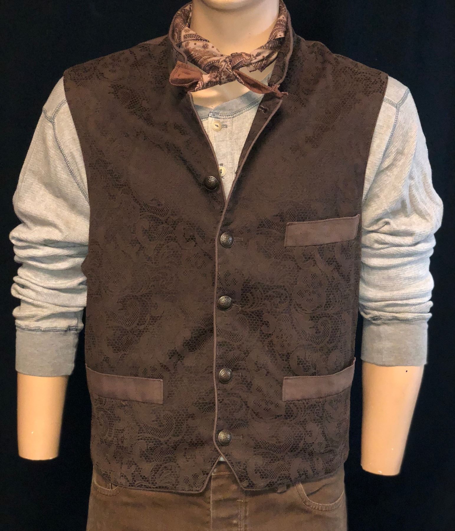 Hero costume worn by Josh Faraday , played by Chris Pratt in the production of The Magnificent Seven (2016), the action western movie where seven gunmen in the old west gradually come together to help a poor village against savage thieves.