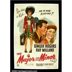 The Major and The Minor (Paramount 1942) One Sheet (27" X 41") An unforgettable comedy and the first directing effort by Billy Wilder starring Ginger Rogers and Ray Milland. Signed by Wilder. Fine+ Linen.Important notice: We expect to be auctioning lots at the rate of 200-250 per hour. Sometimes eBay Premier live bid software cannot keep up with that pace, so we strongly recommend that you place a realistic proxy bid now as insurance to avoid disappointment. Also please note that all Heritage/CAA lots purchased through eBay Premier carry a 20% Buyer's Premium.