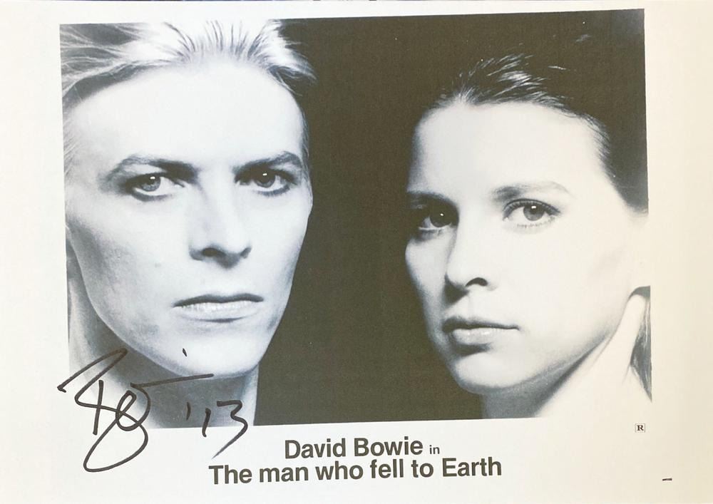 The Man Who Fell to Earth David Bowie facsimile signed movie photo. 8x10 inches. This item is a reprint of an original autograph