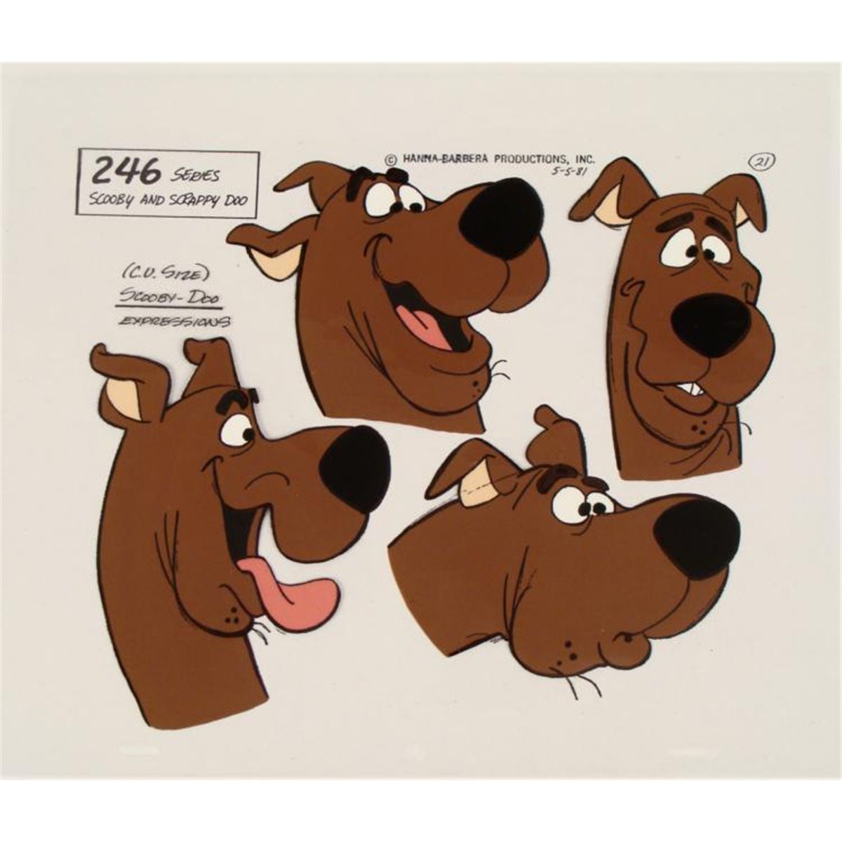 This is an original production cel from the popular tv series Scooby Doo. Each episode featured Scooby and the four teenaged members of the Mystery, Inc. gang: Fred, Shaggy, Daphne and Velma, arriving to a location in the "Mystery Machine" and encountering a ghost, monster, or other supernatural creature, whom they learned was terrorizing the local populace. After looking for clues and suspects and being chased by the monster, the kids come to realize the ghost is anything but, and - often with the help of a Rube Goldberg-like trap designed by Fred - they capture the villain and unmask him. * Depicted here are the many faces of Scooby Doo. * Original Animated Cel Overall Size of the Cel: 10 1/2" x 12 1/2" Excellent Condition This is an original hand-painted cel set-up used in the production of "Scooby Doo". Each one-of-a-kind set-up represents a slight change in position of the characters. When individually photographed and projected in rapid succession, the images appear to move. * To create production cels, the original animator's drawing is transferred onto an acetate cel (by hand-inking and/or photo copying). The cel is then hand-painted on the reverse side. * The cel is ready to be matted and framed. The animators notations are located at the top of cel. *