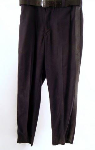 Eckert (Michael Eklund) screen worn, hero, multiple bullet holes with blood, navy blue long sleeve button front with patches on the sleeves 'Somer's Uniforms' shirt, (size 17/36) black leather uniform belt, grey clip on neck tie, and navy flat front with stripes on the side 'Fechimer' pants. Includes wardrobe tag!