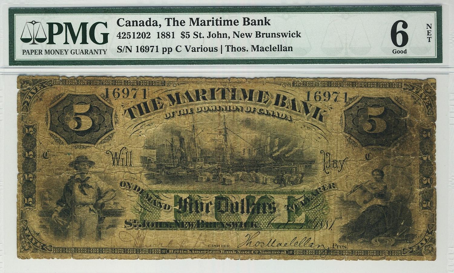 The Maritime Bank 1881 $5 16971 CH-425-12-02 PMG G6