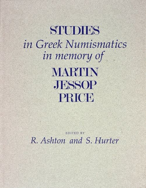 Ashton, Richard, Silvia Hurter, Georges Le Rider and Roger Bland [editors]. STUDIES IN GREEK NUMISMATICS IN MEMORY OF MARTIN JESSOP PRICE. London, 1998. 4to, original blue cloth, gilt; jacket. xv, (1), 400 pages; 79 plates of coins. Fine. Of particular importance to those interested in archaic and classical Greek coins. Daehn 14.