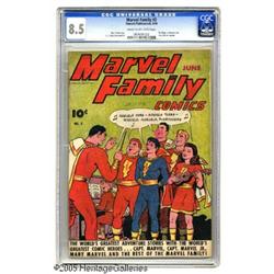 <B>The Marvel Family #2 (Fawcett, 1946) CGC VF+ 8.5 Cream to off-white pages.</B></I> This issue marked the first time the <I>entire</B></I> Marvel Family (including Lieutenants) appeared together! The gang's all here on C. C. Beck's cover. That includes Uncle Marvel, who may not have super powers, but can at least hold his own when it comes to tickling the ivories. The issue's interior art is also by Beck. Overstreet 2004 VF 8.0 value = $475; VF/NM 9.0 value = $713. CGC census 12/04: 2 in 8.5, 7 higher.