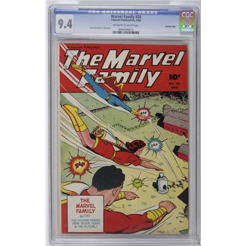 <B>The Marvel Family #24 Crowley Copy pedigree (Fawcett, 1948) CGC NM 9.4 Off-white to white pages.</B></I> C. C. Beck and Joe Certa art. Overstreet 2006 NM- 9.2 value = $285. CGC census 10/06: 1 in 9.4, none higher.<BR><BR><b>Shipping:</b> Slabbed Comic (<a target="_blank" href="http://www.heritageauctions.com/common/shipping.php">view shipping information</a>)