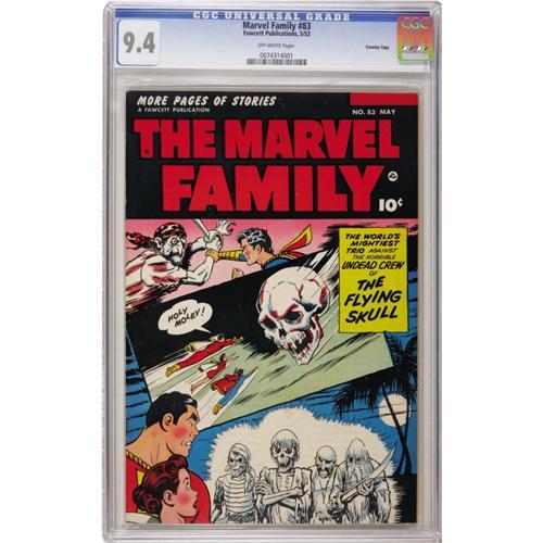 <B>The Marvel Family #83 Crowley Copy pedigree (Fawcett, 1953) CGC NM 9.4 Off-white pages.</B></I> Undead pirate story. Only one other copy on the current CGC census. Overstreet 2006 NM- 9.2 value = $185. CGC census 10/06: 1 in 9.4, none higher.<BR><BR><b>Shipping:</b> Slabbed Comic (<a target="_blank" href="http://www.heritageauctions.com/common/shipping.php">view shipping information</a>)