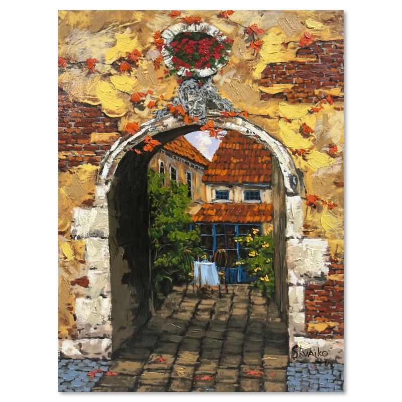 "The Mask" is a hand embellished limited edition publisher's proof on stretched canvas by Viktor Shvaiko, numbered 2/3 and hand signed by the artist. Includes Letter of Authenticity. Measures approx. 16" x 12" (image). There is minor wear on the corners a