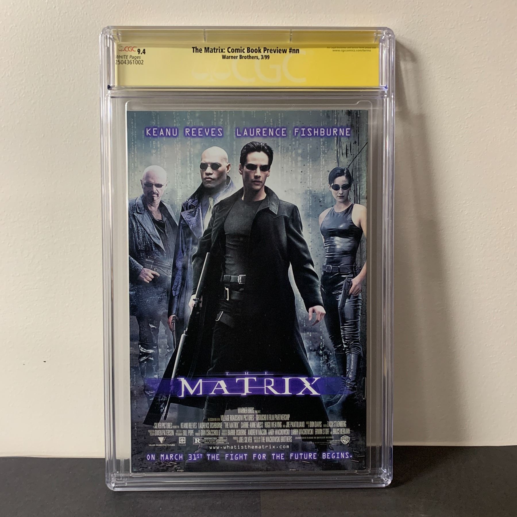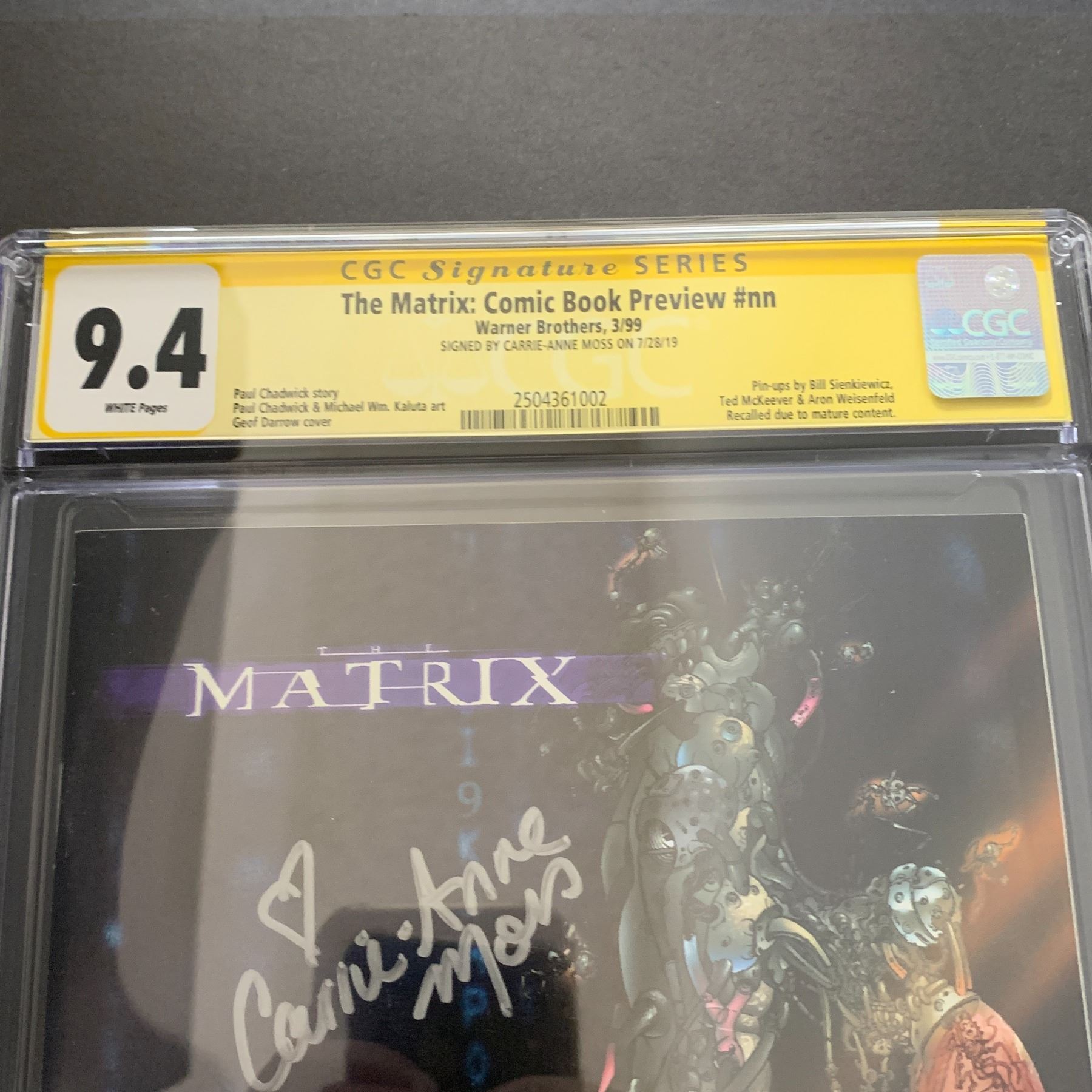 Originally planned to be released to coincide with the movie release, this comic was recalled due to objectionable content. Copies leaked to the public though and here we have a CGC SS 9.4 copy signed by actress Carrie Anne Moss in beautiful silver sharpie and a heart. Please look at the pictures carefully to determine what you believe the condition of collectible is. We are currently accepting consignments. Email us a aeronhouse1994@gmail.com or visit our website, www.ahauctionhouse.com. We are currently seeking Star Wars related consignments.