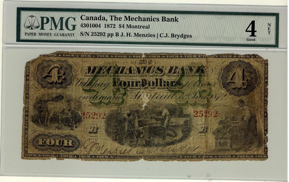 The Mechanics Bank, 1872 $4 #25292, CH-430-10-04, PMG G4,