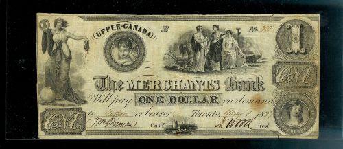 The Merchants Bank "Upper Canada" Toronto $1 1837 CH-450-10-02 No. 371. F+. A very nice early banknote!