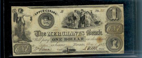 The Merchants Bank Upper Canada Toronto $1 1837 CH-450-10-02 No. 371. F+. A very nice early banknote!