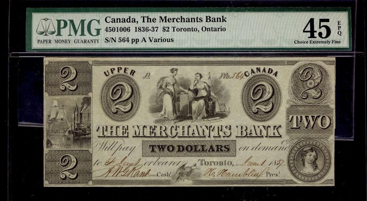 The Merchants Bank of Canada 1836-37 #564 CH-450-10-06 PMG CH EF45.