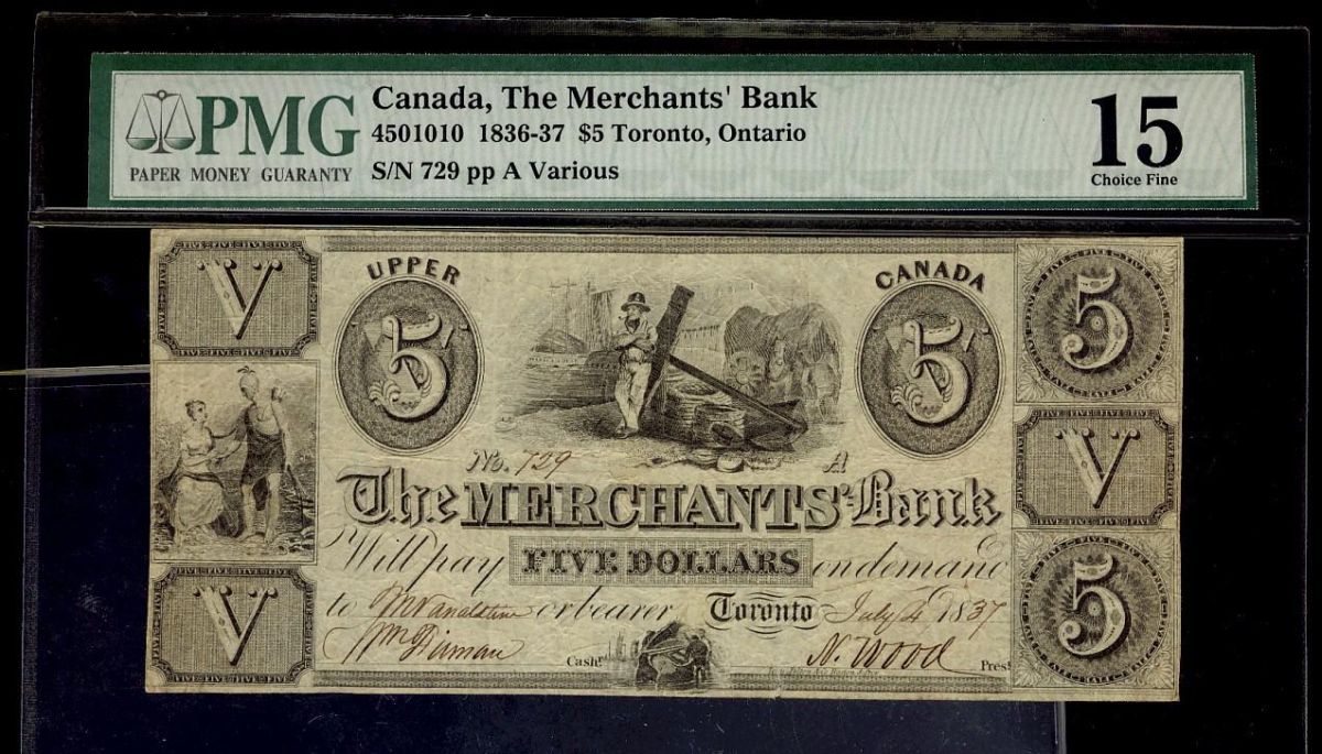 The Merchants Bank of Canada 1836-37 #729 CH-450-10-10 PMG CH F15.