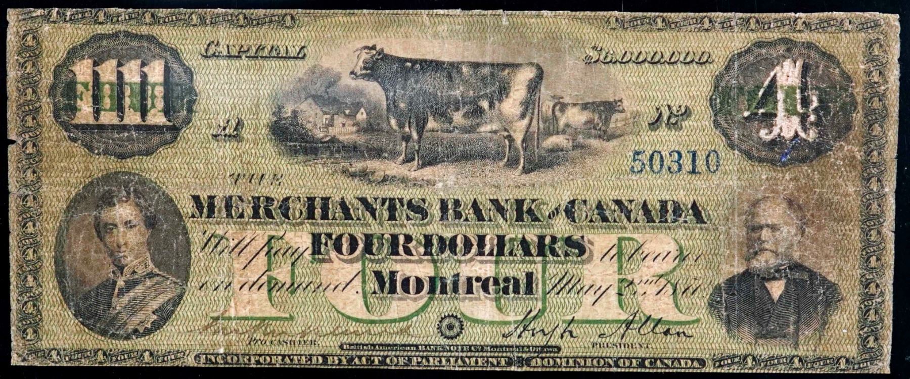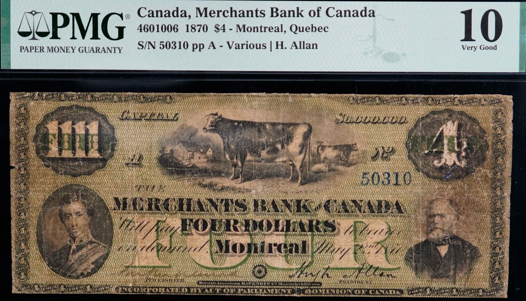 The Merchants Bank of Canada; 1870 $4 #50310 CH-460-10-06, PMG Very Good-10.