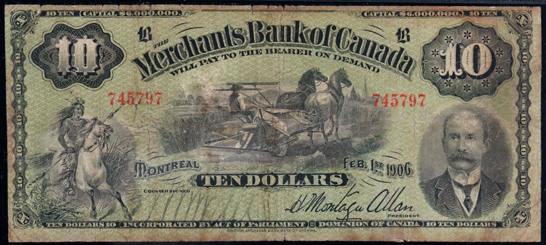 The Merchants Bank of Canada 1906 $10 #745797 CH-460-16-04 PMG Very Fine-20