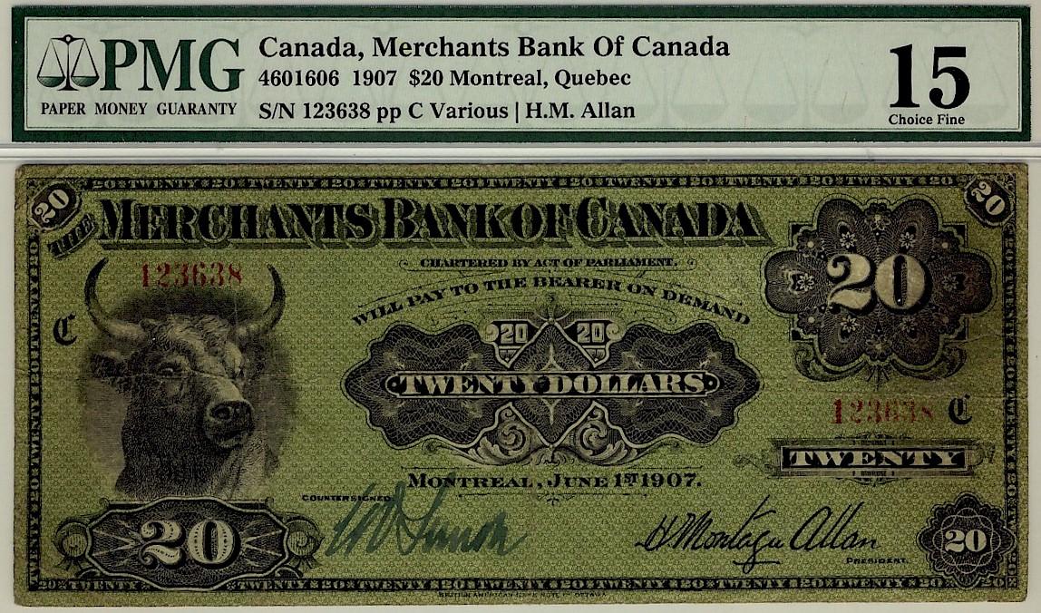 The Merchants Bank of Canada, 1907 $20 #123638, CH-460-16-06, PMG CH F15.